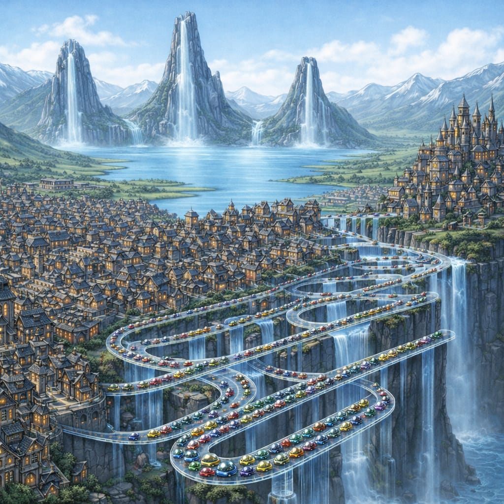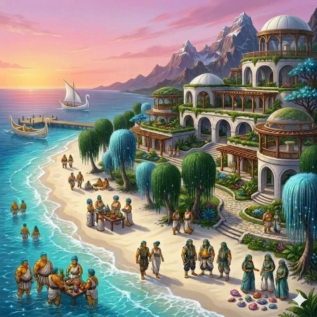Outside of grandpolises and other Dwarven freeholds are the various peninsular and island bound Kingdoms of Parsian peoples. Though heavily inspired by dwarvish architecture and benefiting from their craftsmanship in many regards. These joyous, playful people are a society of talented artists and athletes who make a colorfully unique world of their own within the bounds of their territories. Many of these lands are mapped out with a sense of social interaction in all things, and therefore take on an appearance of amusement parks, with roads and waterways designed with a purposeful intention of having them easily transitioned into venues for athletic events and performances of the arts.