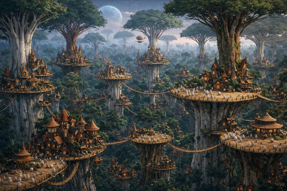 Densely forested today, the realm had once been saturated in the mega city complexes of the Avopouragain peoples. These primordial beings were first created before all other mortal people by the chaotic demiurge Yaldabaoth, and were given domain over that crowning realm. Gifted with the control of plants, the life source of most people, the Fairies of the Panmer and Torlass were set up to be the leaders of Avopouragain society.